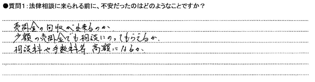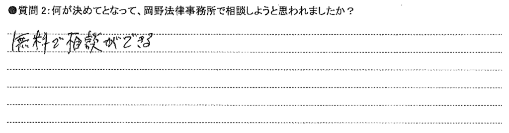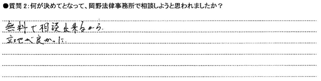 岡野法律事務所では、相談に来られた方に「お客様の声」を書いて頂いております。
