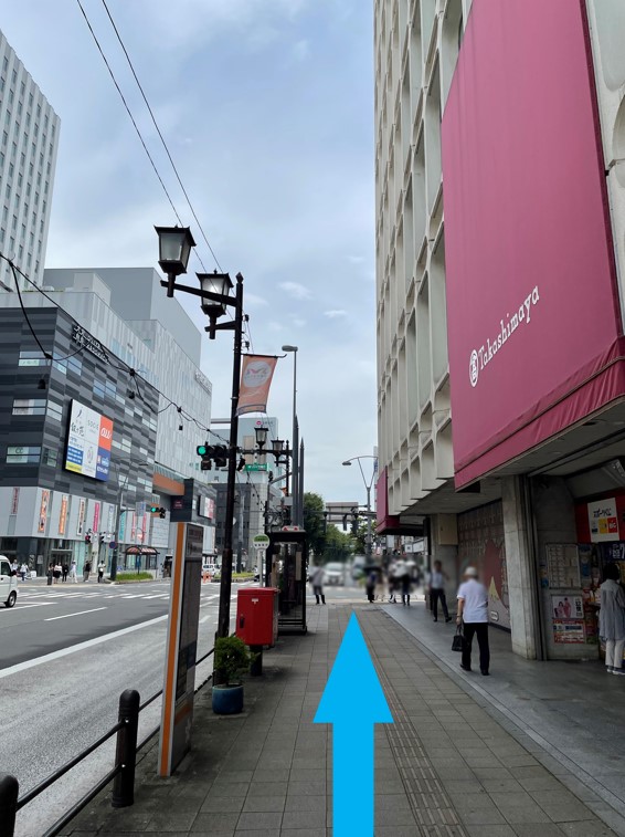 ① 大宮駅東口を出て、大宮高島屋方向へ