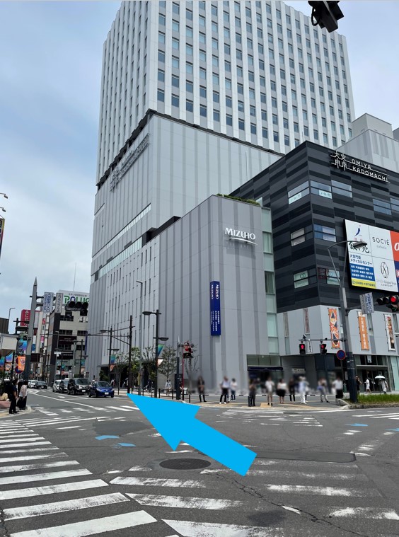 ③ 大宮駅東口入口交差点を左に曲がり、大栄橋方向へ