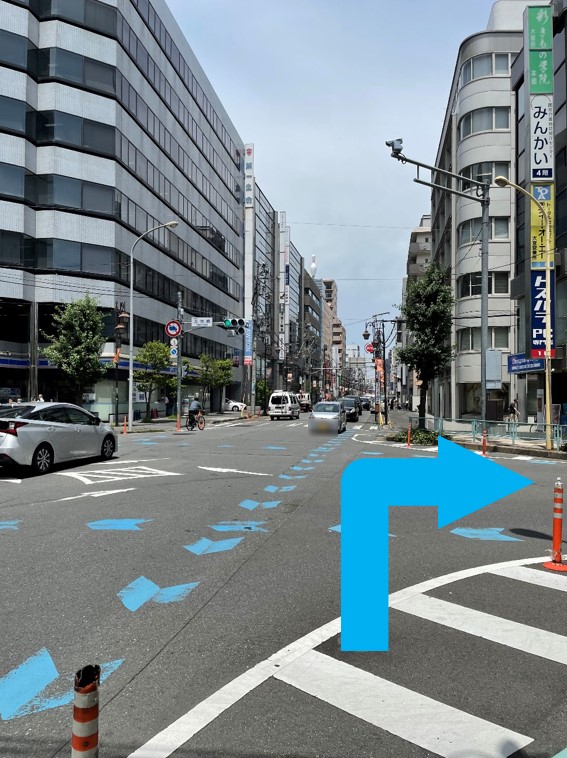 ⑤ 大栄橋交差点を右に曲ります。