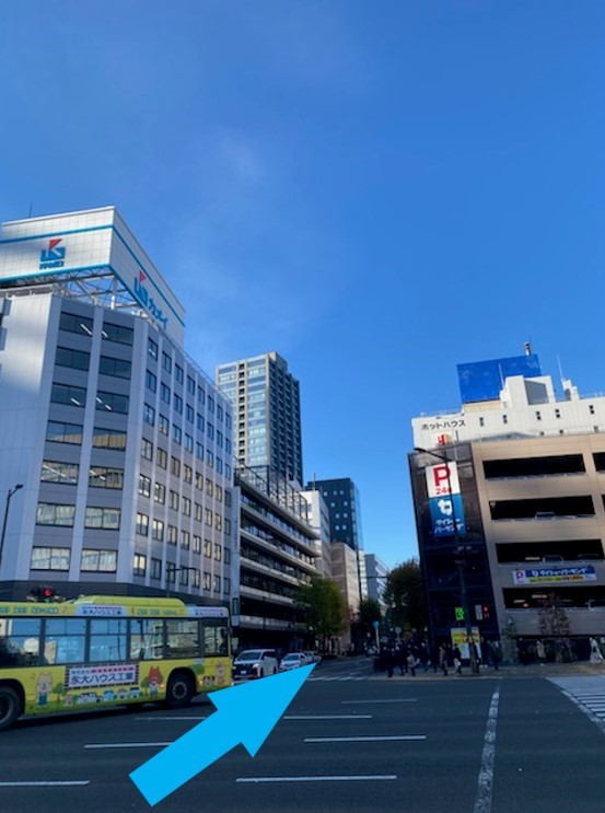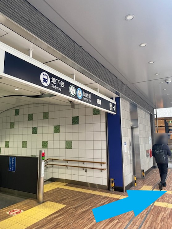 ① 仙台駅西1出口を出て、左折し西方向に南町通りを進みます。