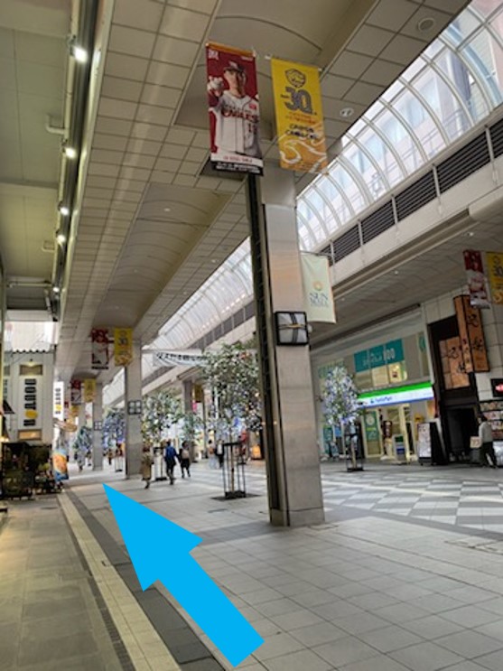 ② 左折して、サンモール一番町・東一番丁通りのアーケード街をお進みください。