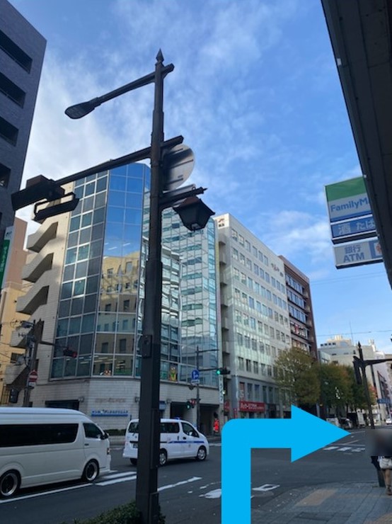 ③ アーケード出口を右折してすぐのファミリーマート一番町南町通り店の交差点を右折して国分寺通へ。