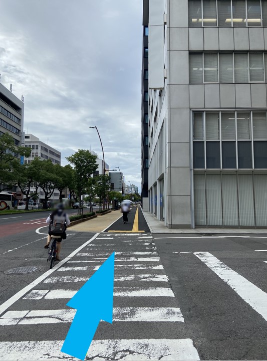 ④ 駐輪場出入り口前の横断歩道を渡ります。