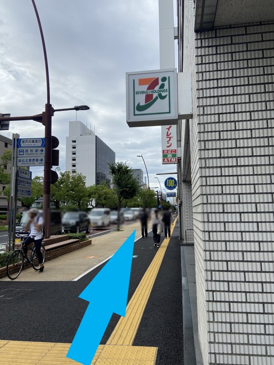 ⑧ 大きい交差点。向かいにセブンイレブンが見えます。