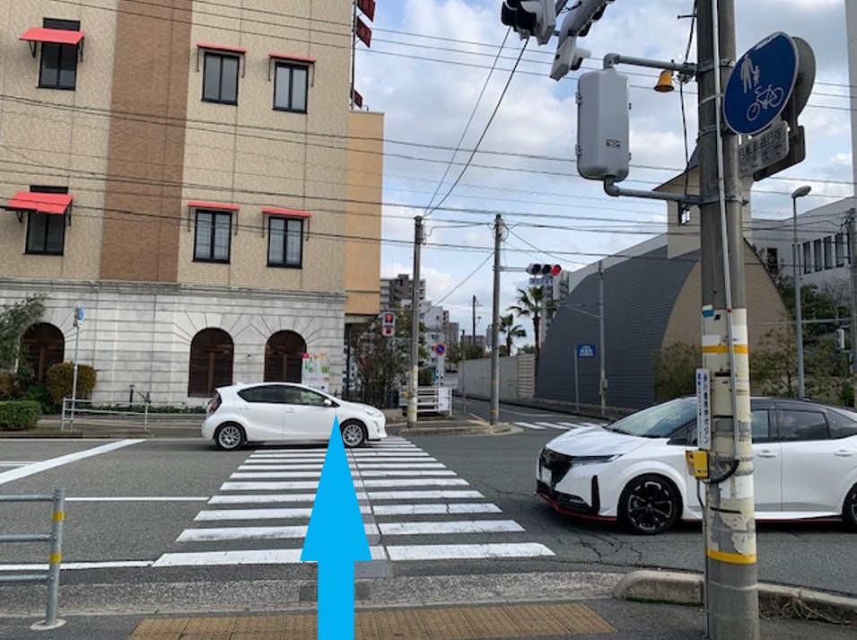 ③ 前方の横断歩道に向かいます。