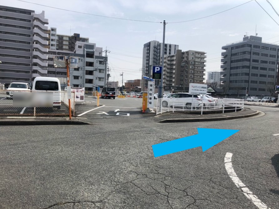 ⑥ 山口グランドホテル専用駐車場の奥に見える「結び家くらとも」を目指します。